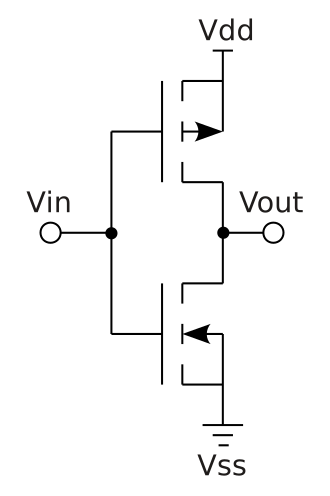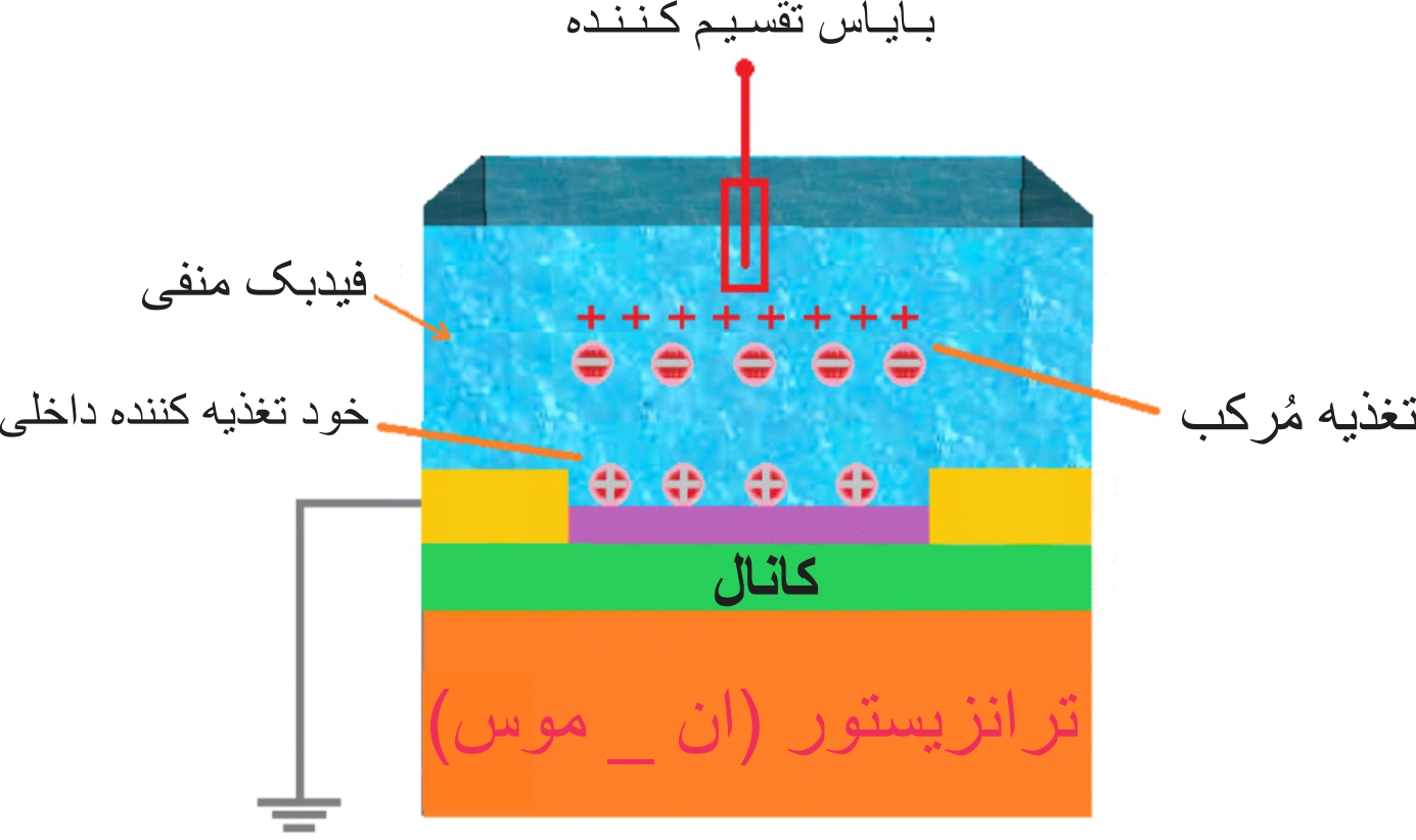 نکته : این به ظاهر تقویت کننده ولتاژ در مدار ساختار و عملکرد جالبی دارد و در انواع مختلف یافت میشود. تفاوت در پایه کلکتور و امیتر سبب بایاس معکوس ترانزیستور مثبت pMOs (کانال _ پی) میشود.