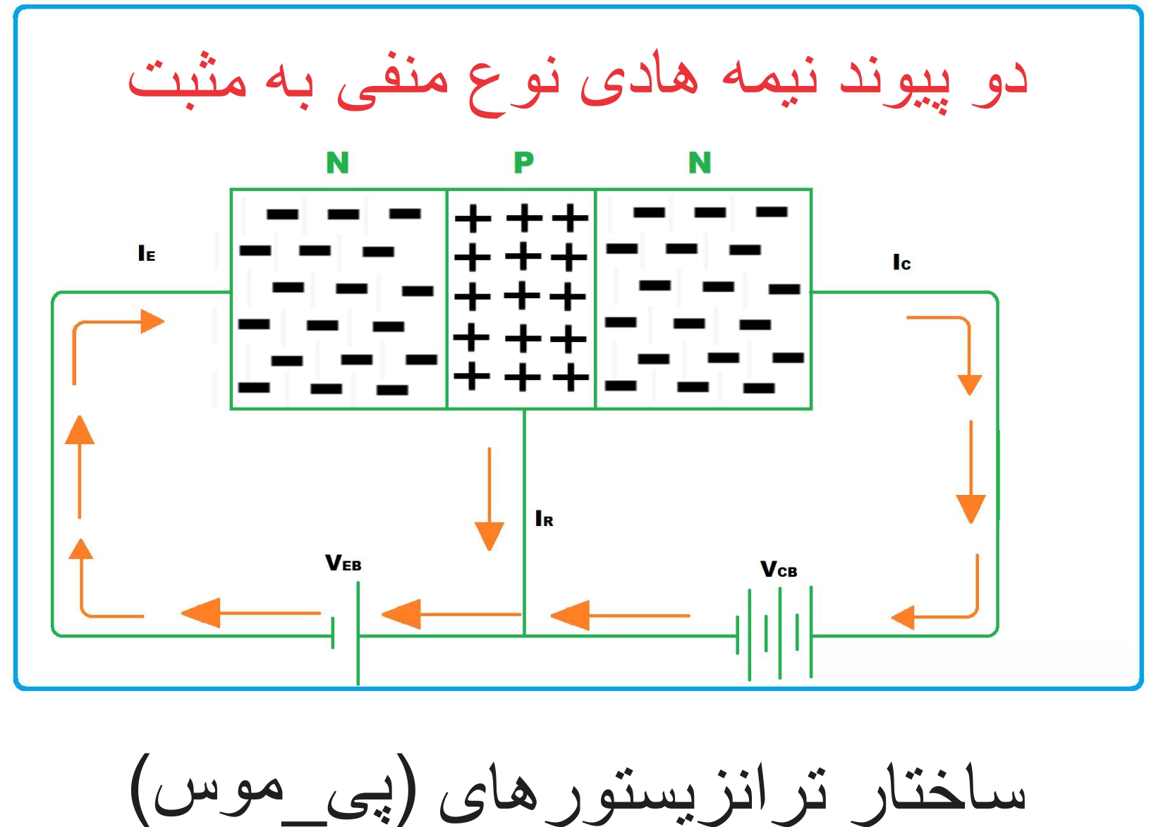 ترانزیستور مثبت pMOs (کانال _ پی) اولیه از دو پیوند نیمه هادی تشکیل شده اند و بر حسب آنکه چگونه این پیوند ها به یکدیگر متصل شده باشند می توان آنها را به دو نوع اصلی PNP یا NPN تقسیم کرد. برای درک نحوه عملکرد یک ترانزیستور ابتدا باید بدانیم که یک پیوند (Junction) نیمه هادی چگونه کار می کند.یک پیوند نیمه هادی از نوع PN را مشاهده می کنید. که از اتصال دادن دو قطعه نیمه هادی P و N به یکدیگر درست شده است. نیمه هادی های نوع N دارای الکترونهای آزاد و نیمه هادی نوع P دارای تعداد زیادی حفره (Hole) آزاد می باشند. بطور ساده می توان منظور از حفره آزاد را فضایی دانست که در آن کمبود الکترون وجود دارد.
